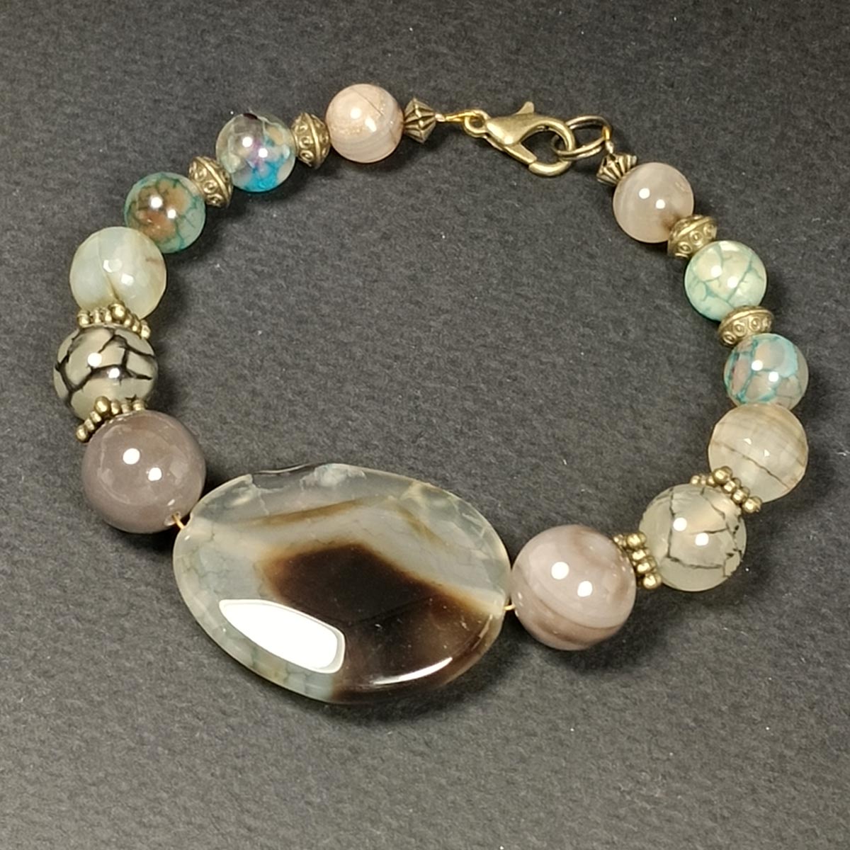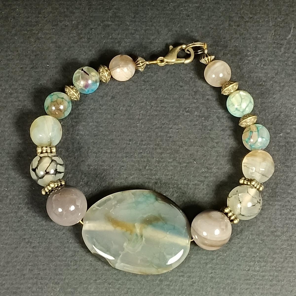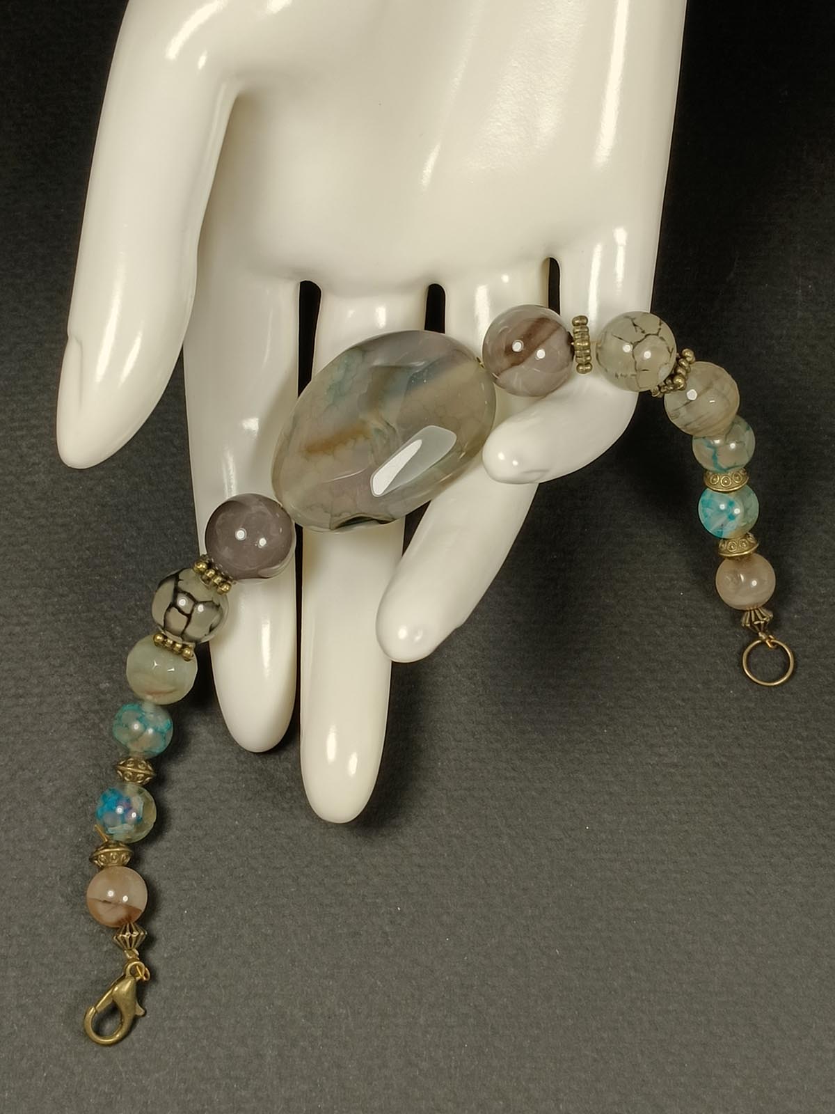 Браслет из натуральных камней (агат, вены дракона) TOV-0524 ручная работа, длина 20 см, внутренний диаметр 5.5 см