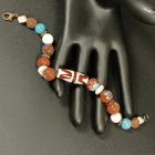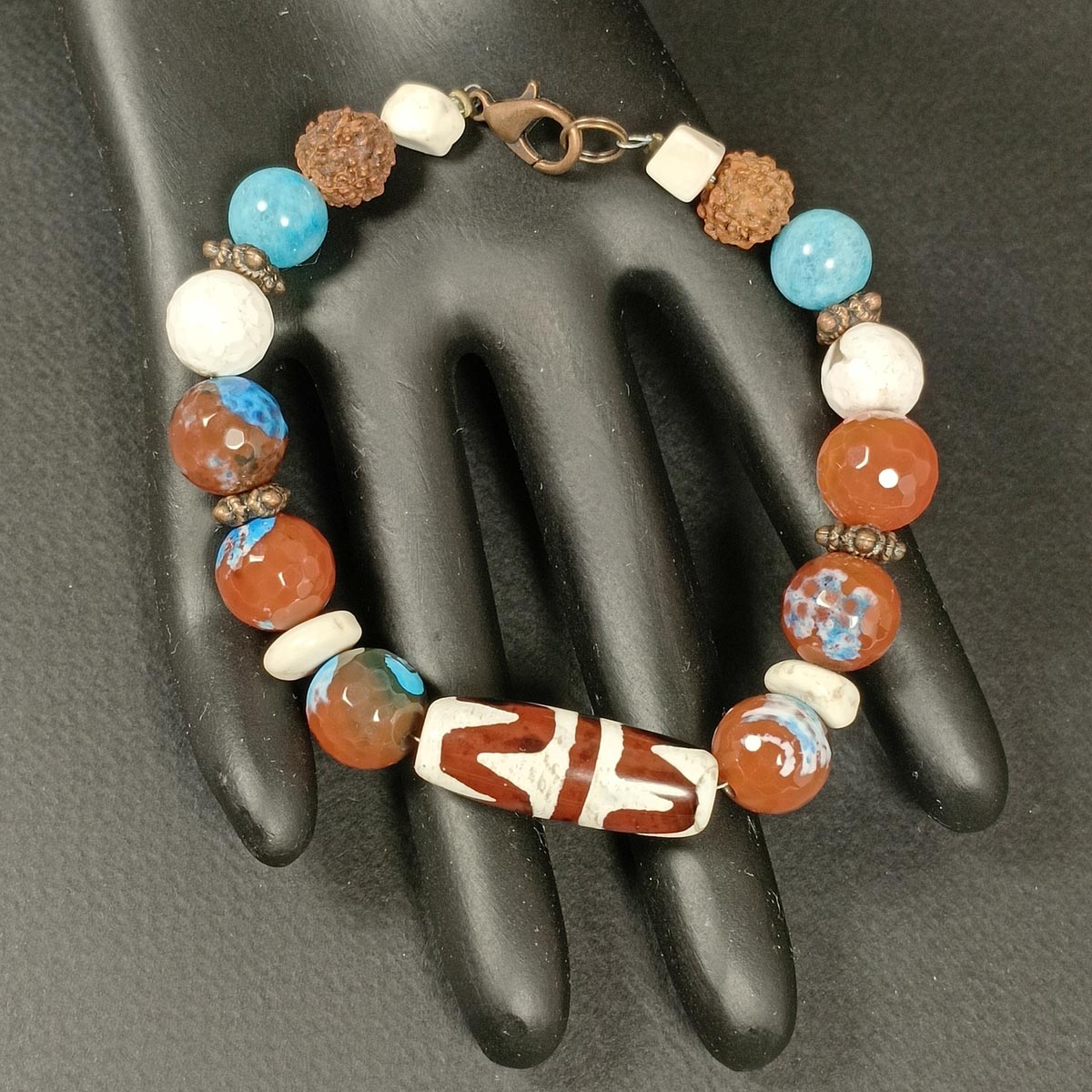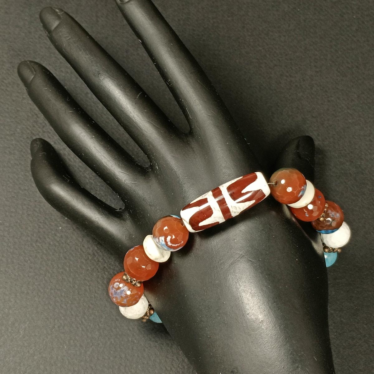Браслет из натуральных камней (яшма, агат, дзи 21 глаз) TOV-0470 ручная работа, диаметр 6 см