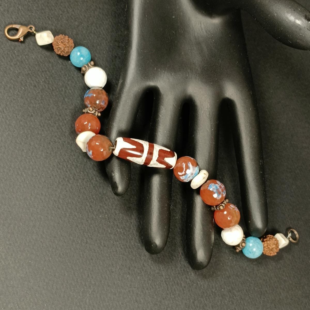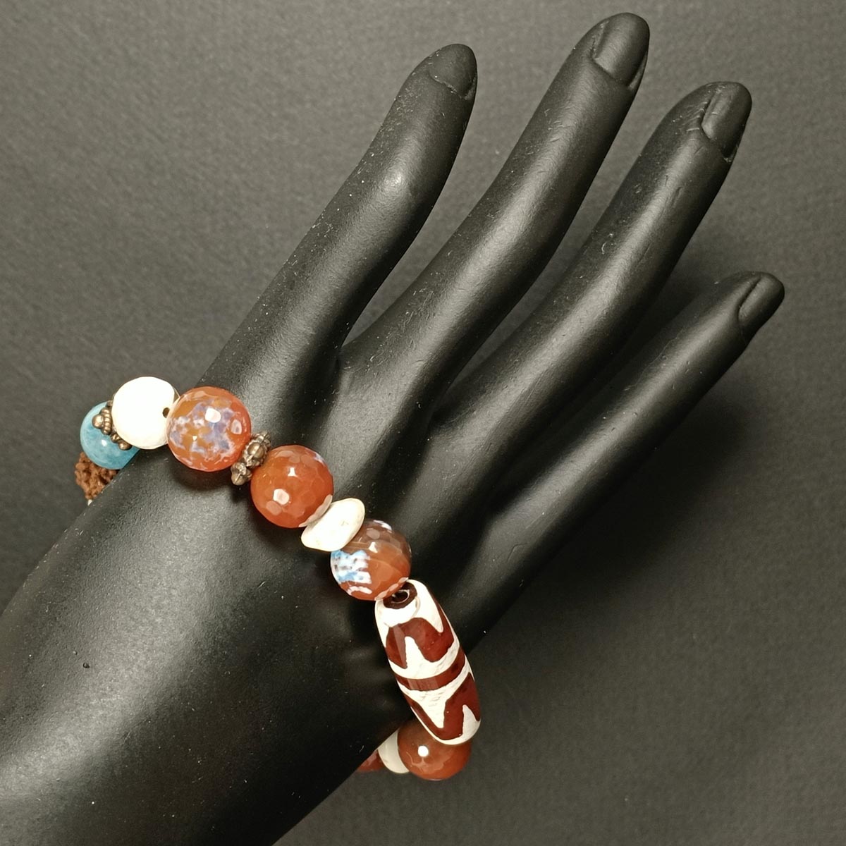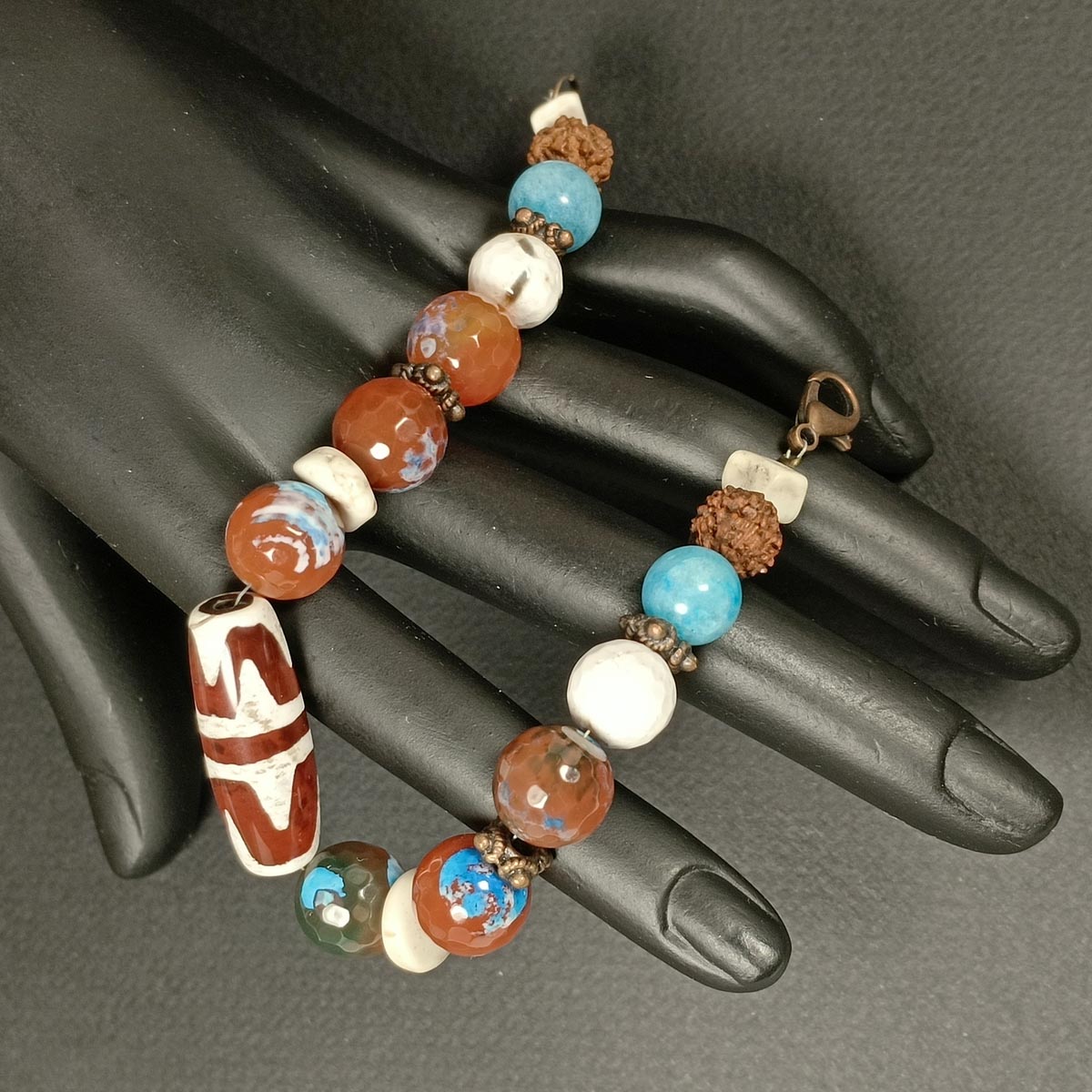 Браслет из натуральных камней (агат, сердолик, рудракша) TOV-0131 ручная работа, длина 20 см