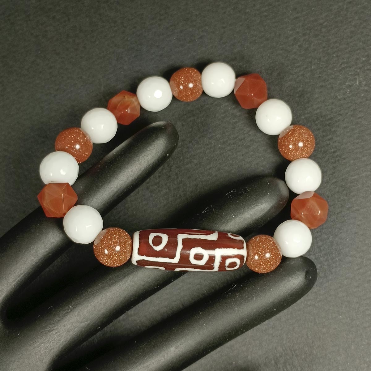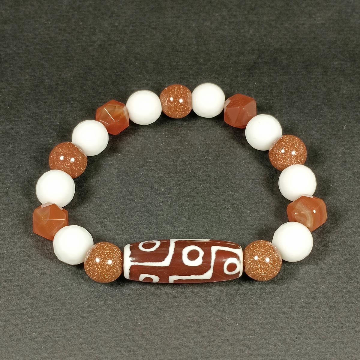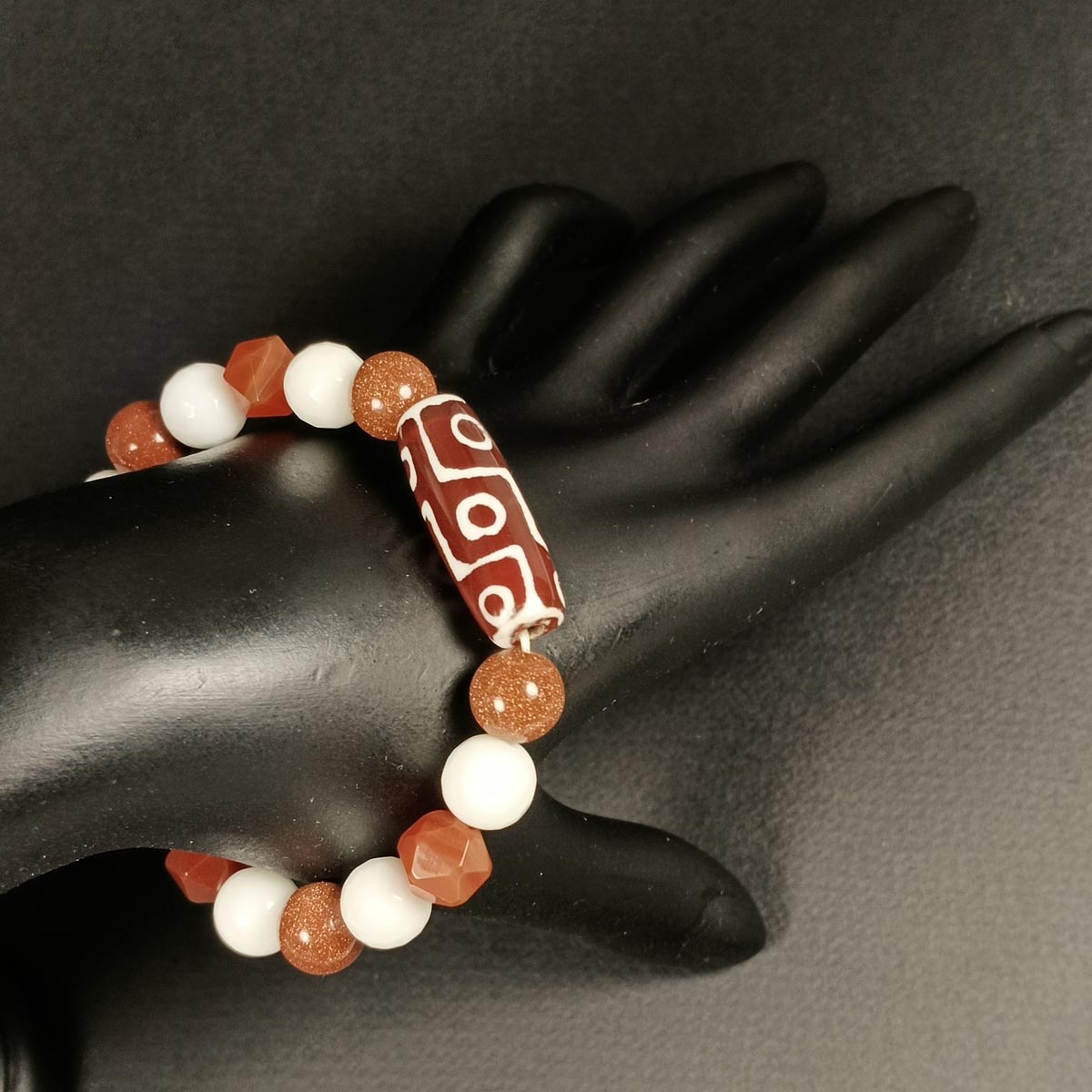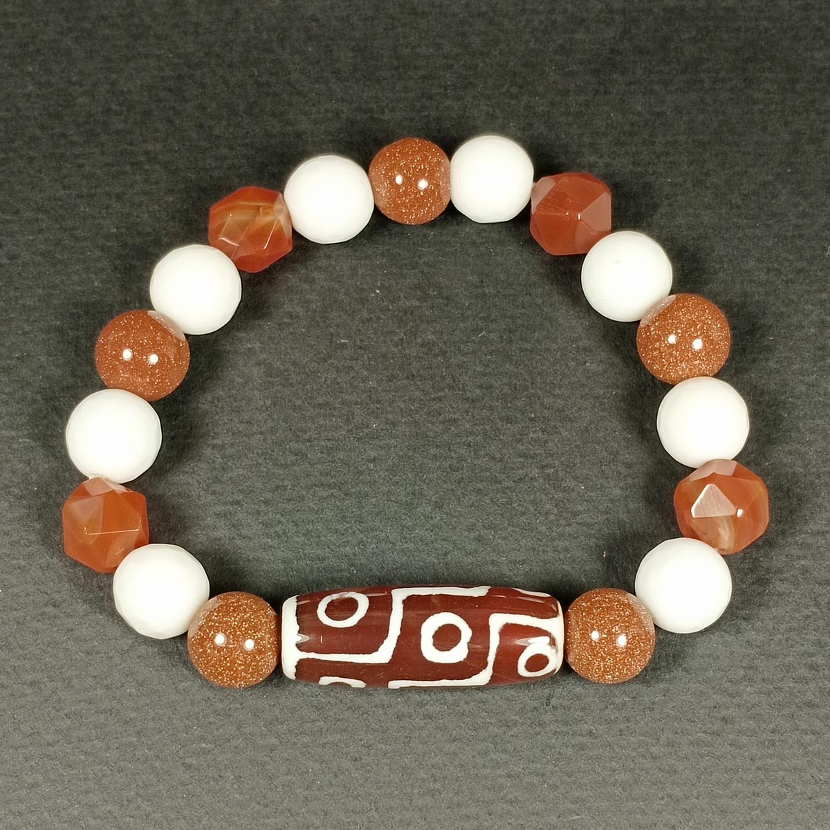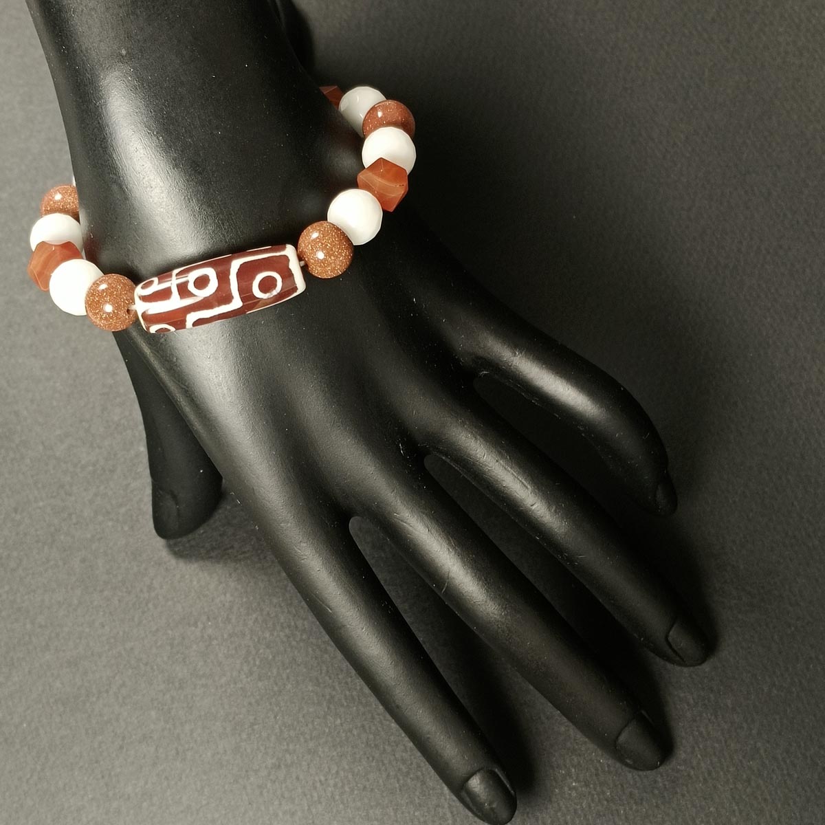 Браслет из натуральных камней (агат, авантюрин, сердолик, дзи 9-глазая) TOV-0537 ручная работа, диаметр 6 см