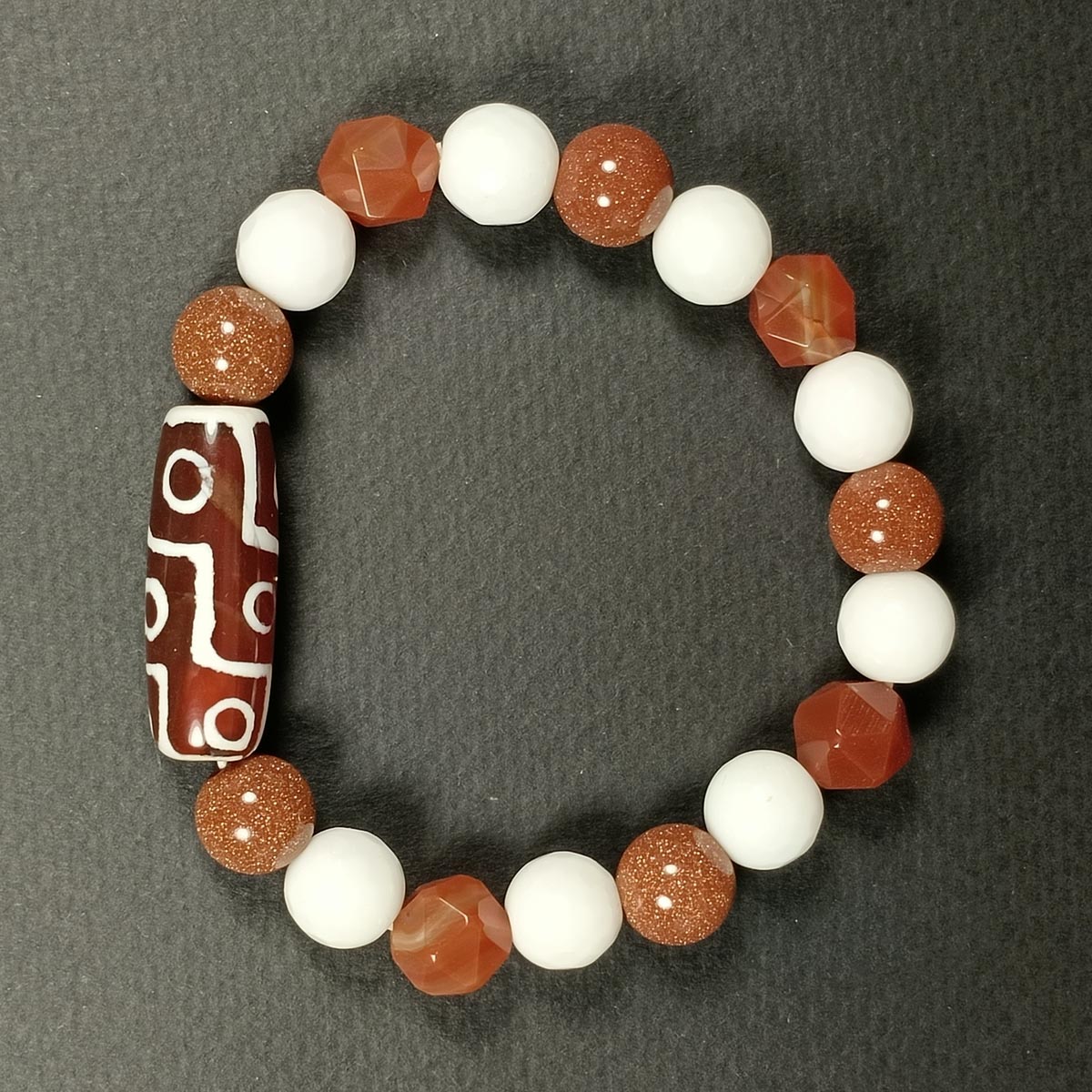 Браслет из натуральных камней (агат, авантюрин, сердолик, дзи) TOV-0244 ручная работа, диаметр 6 см