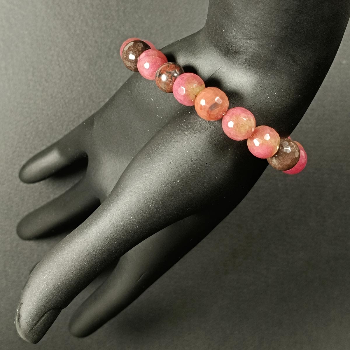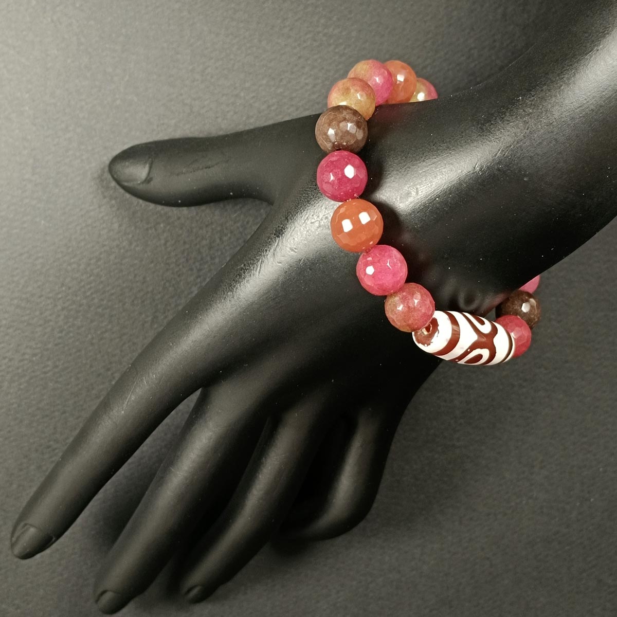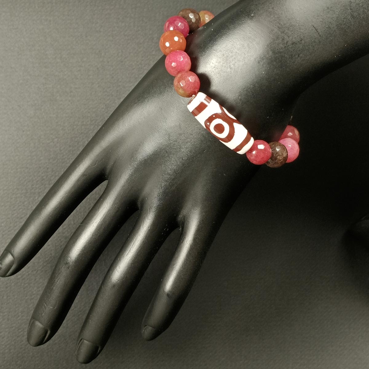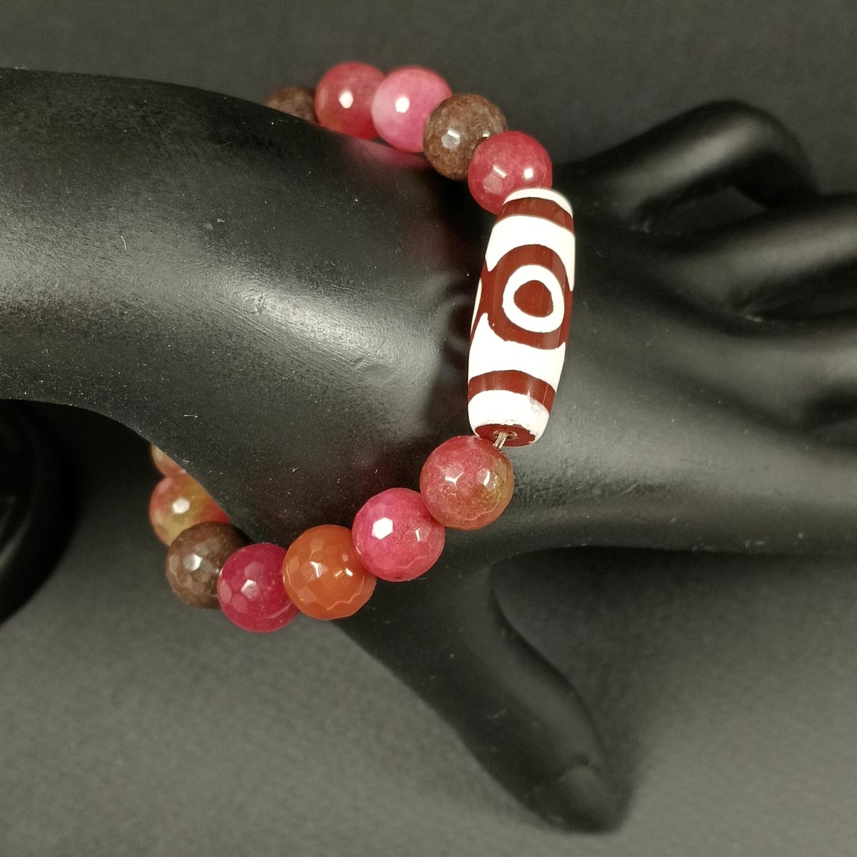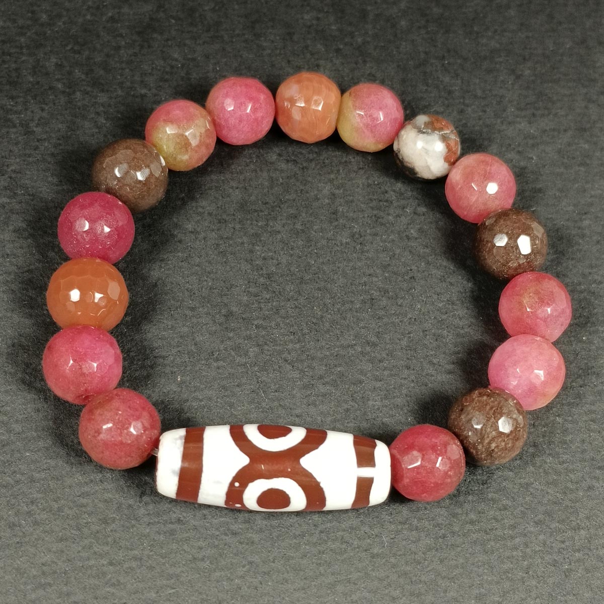 Браслет из натуральных камней (яшма, агат, дзи 21 глаз) TOV-0470 ручная работа, диаметр 6 см