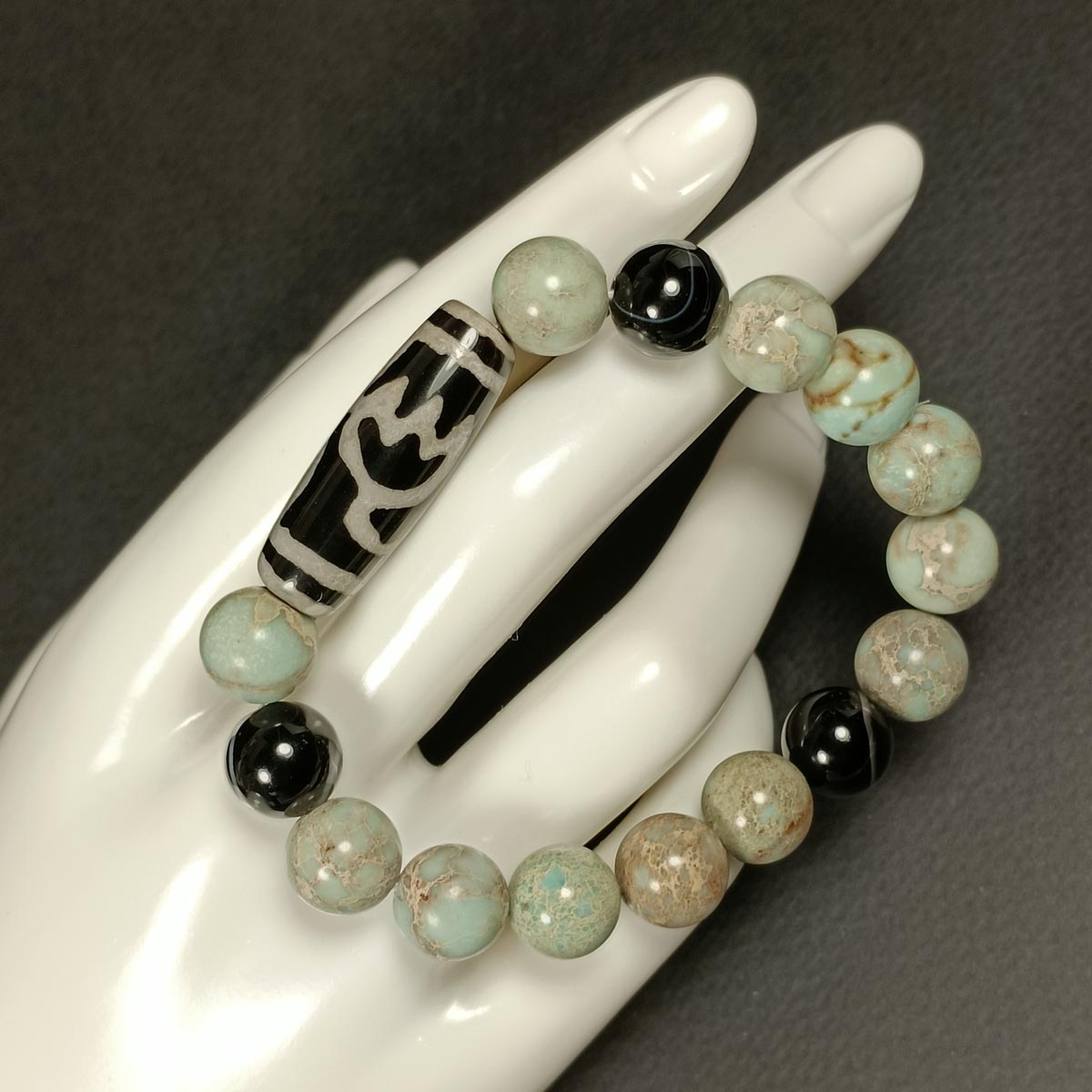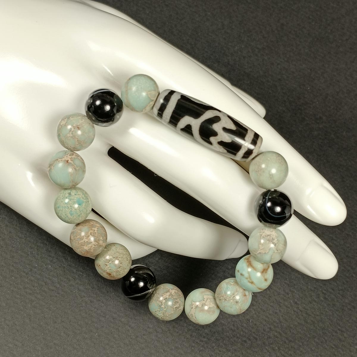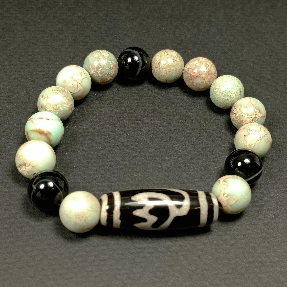 Браслет из натуральных камней (агат, варисцит, дзи лотос) TOV-0540 ручная работа, диаметр 6 см