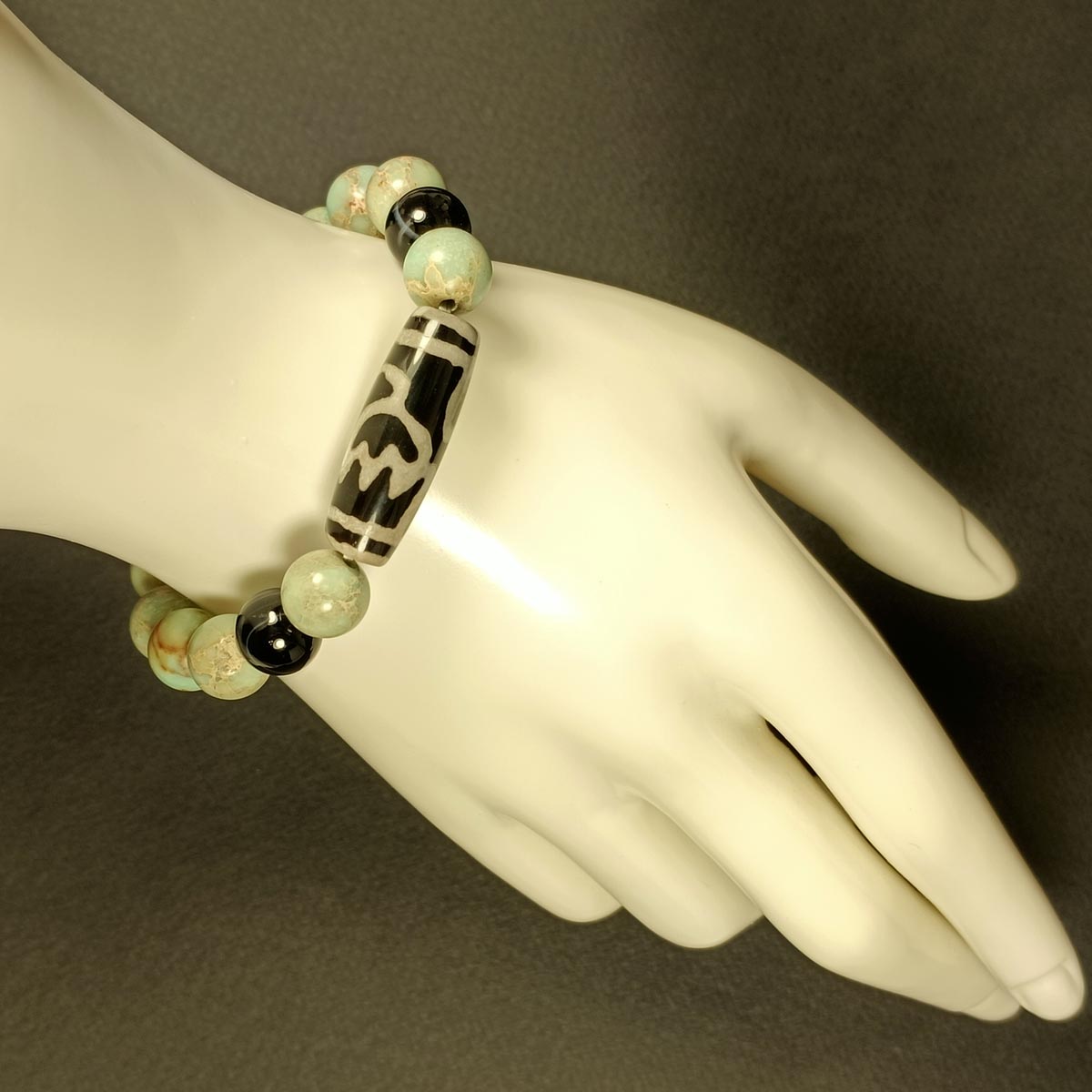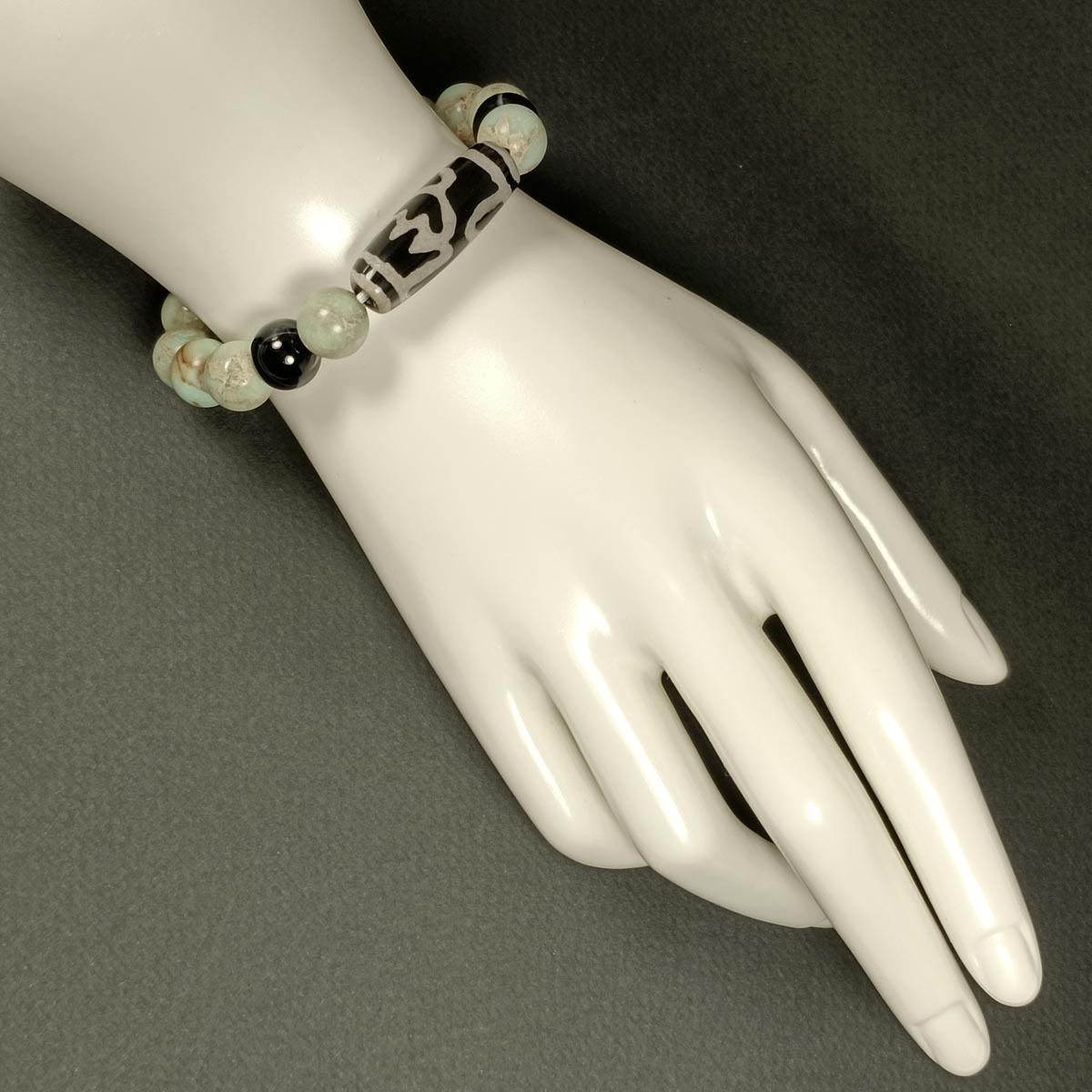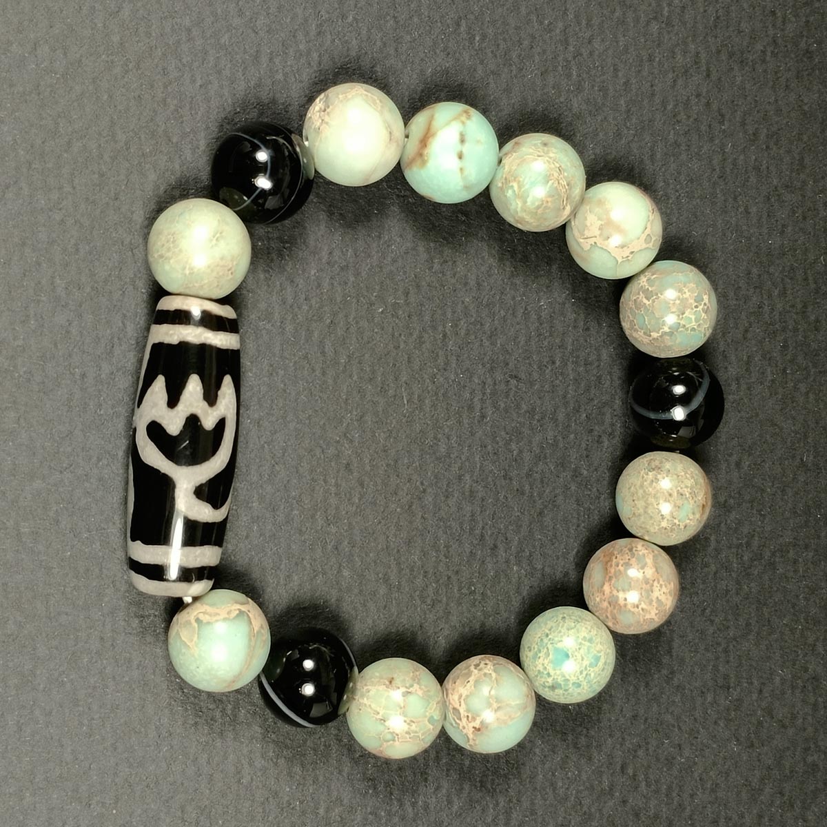 Браслет из натуральных камней (агат, варисцит, дзи лотос) TOV-0540 ручная работа, диаметр 6 см