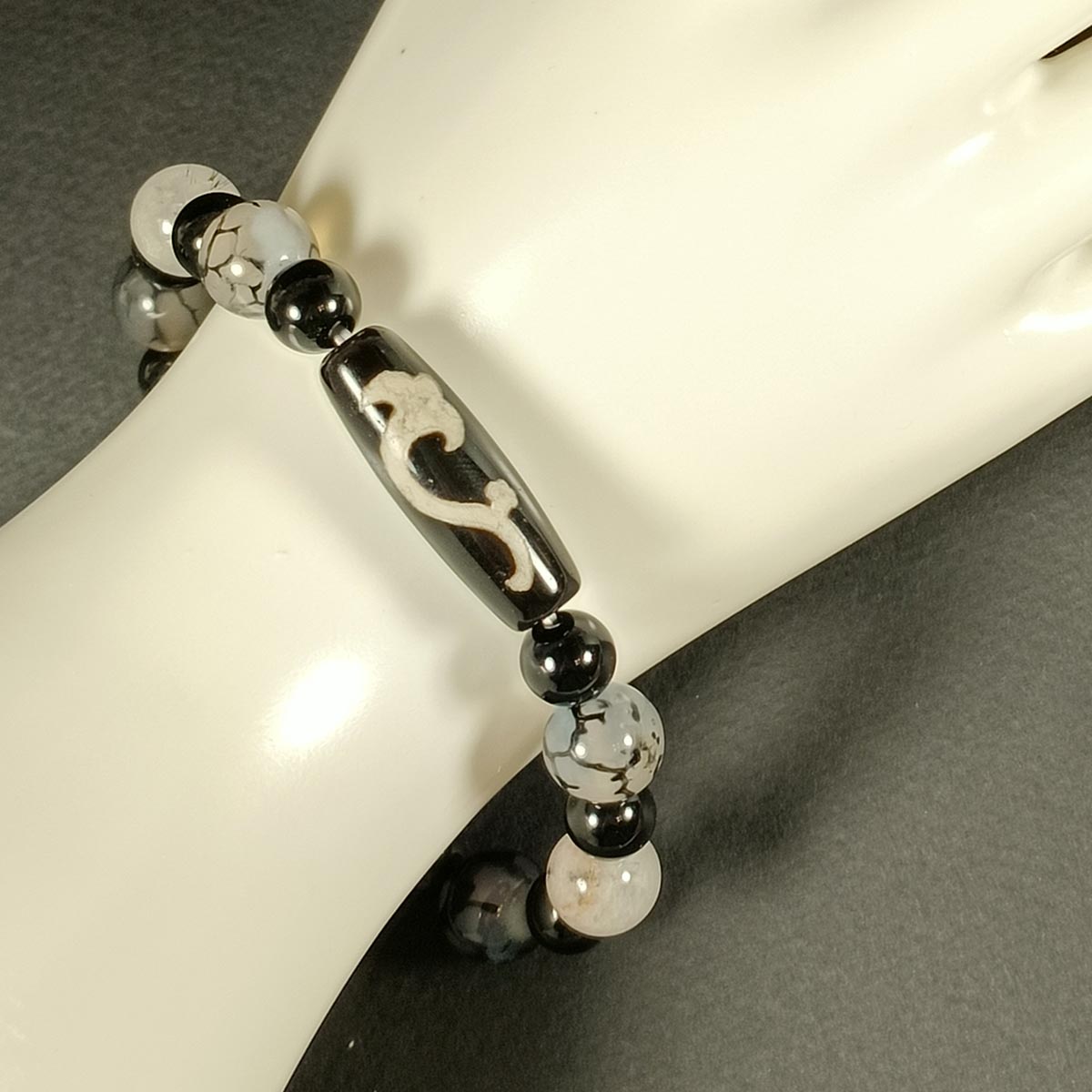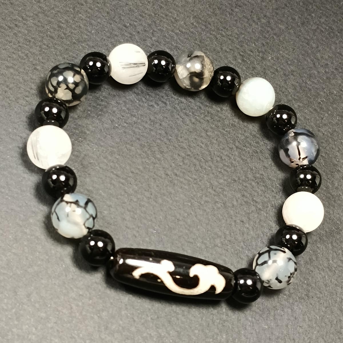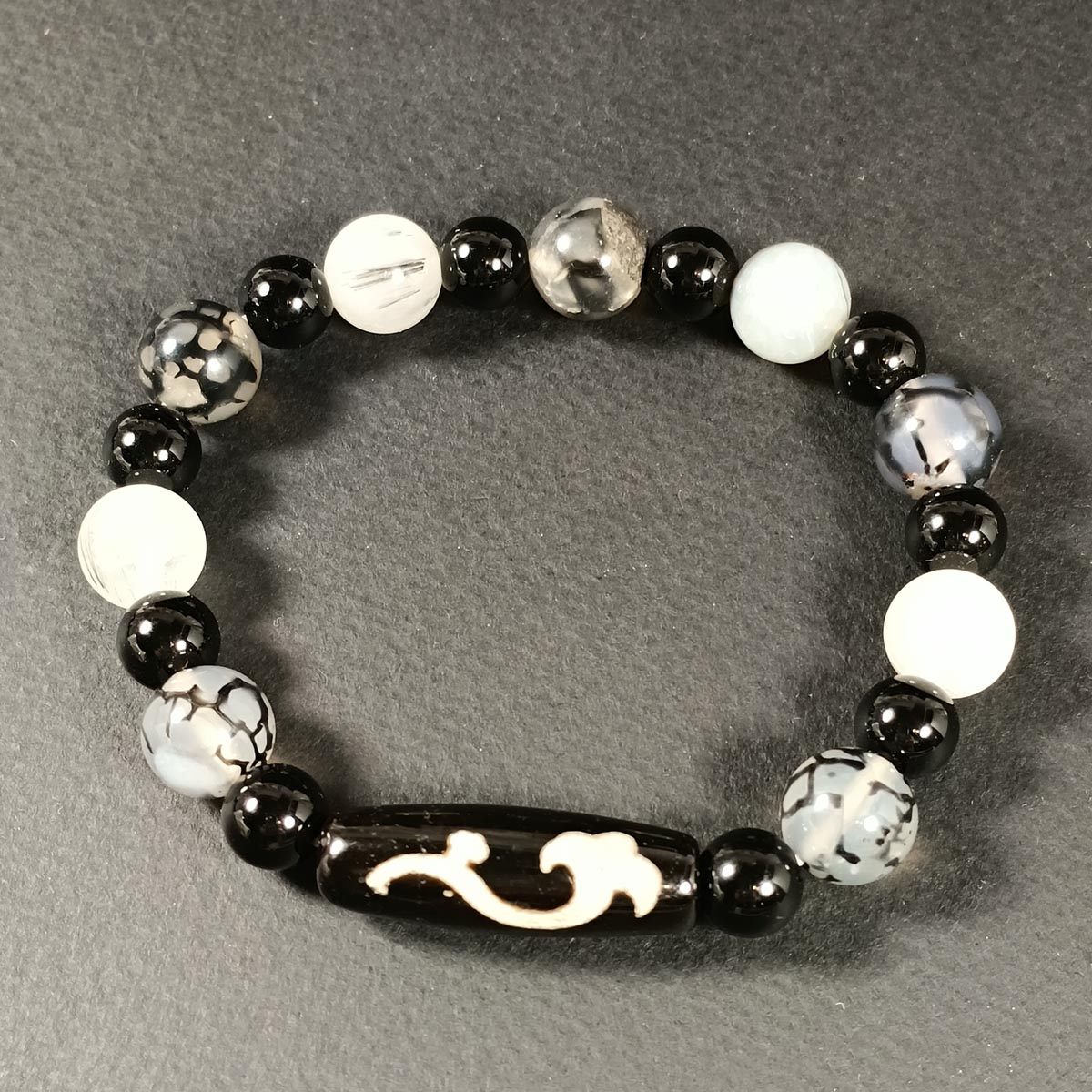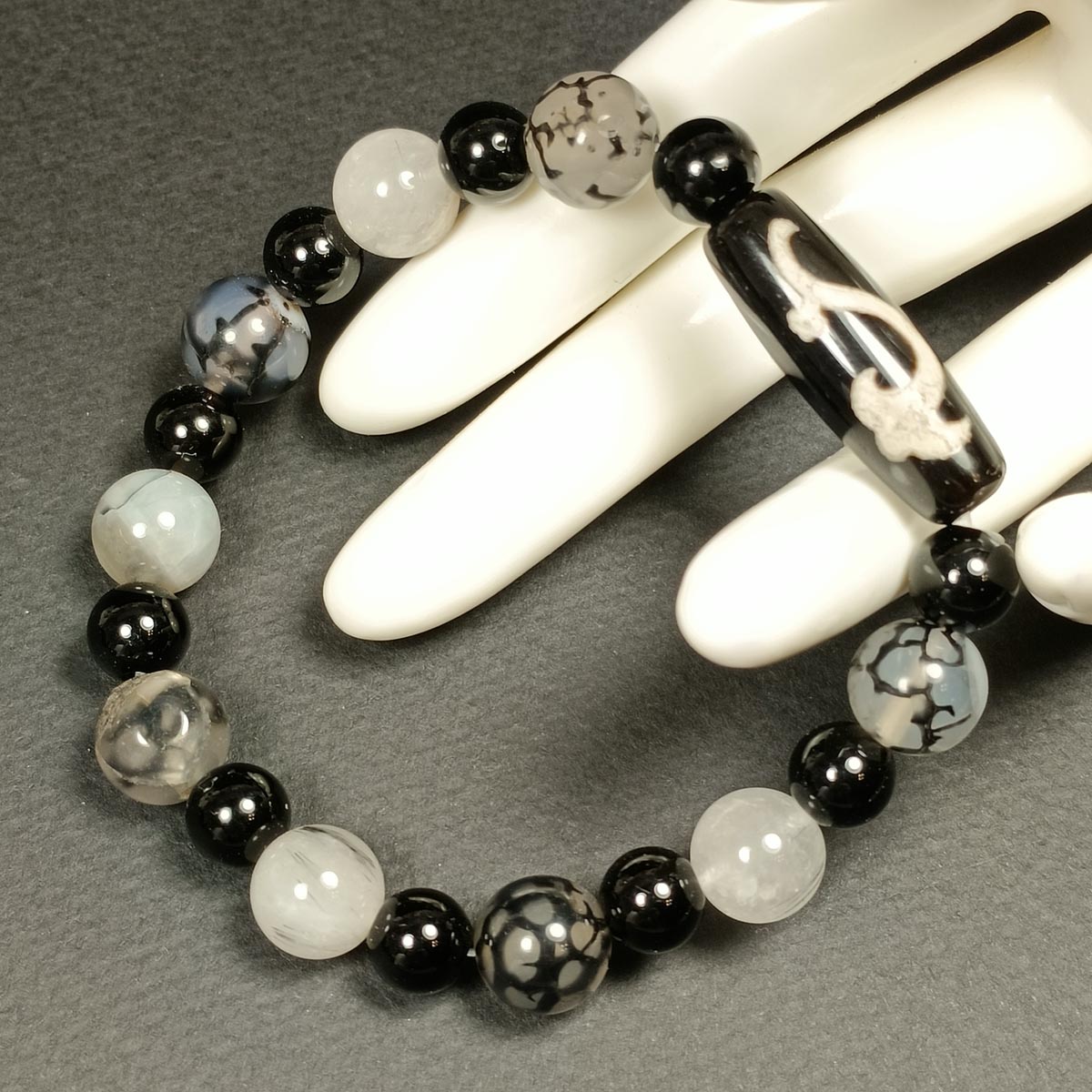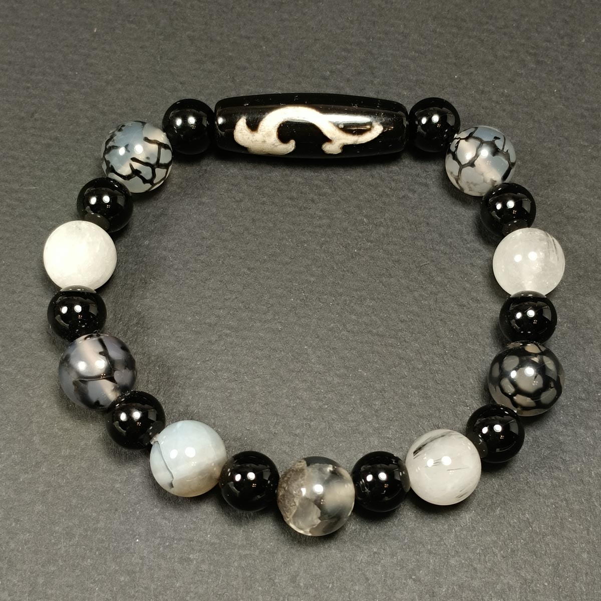 Браслет из натуральных камней (агат, вены дракона, дзи руи) TOV-0541 ручная работа, диаметр 6 см