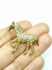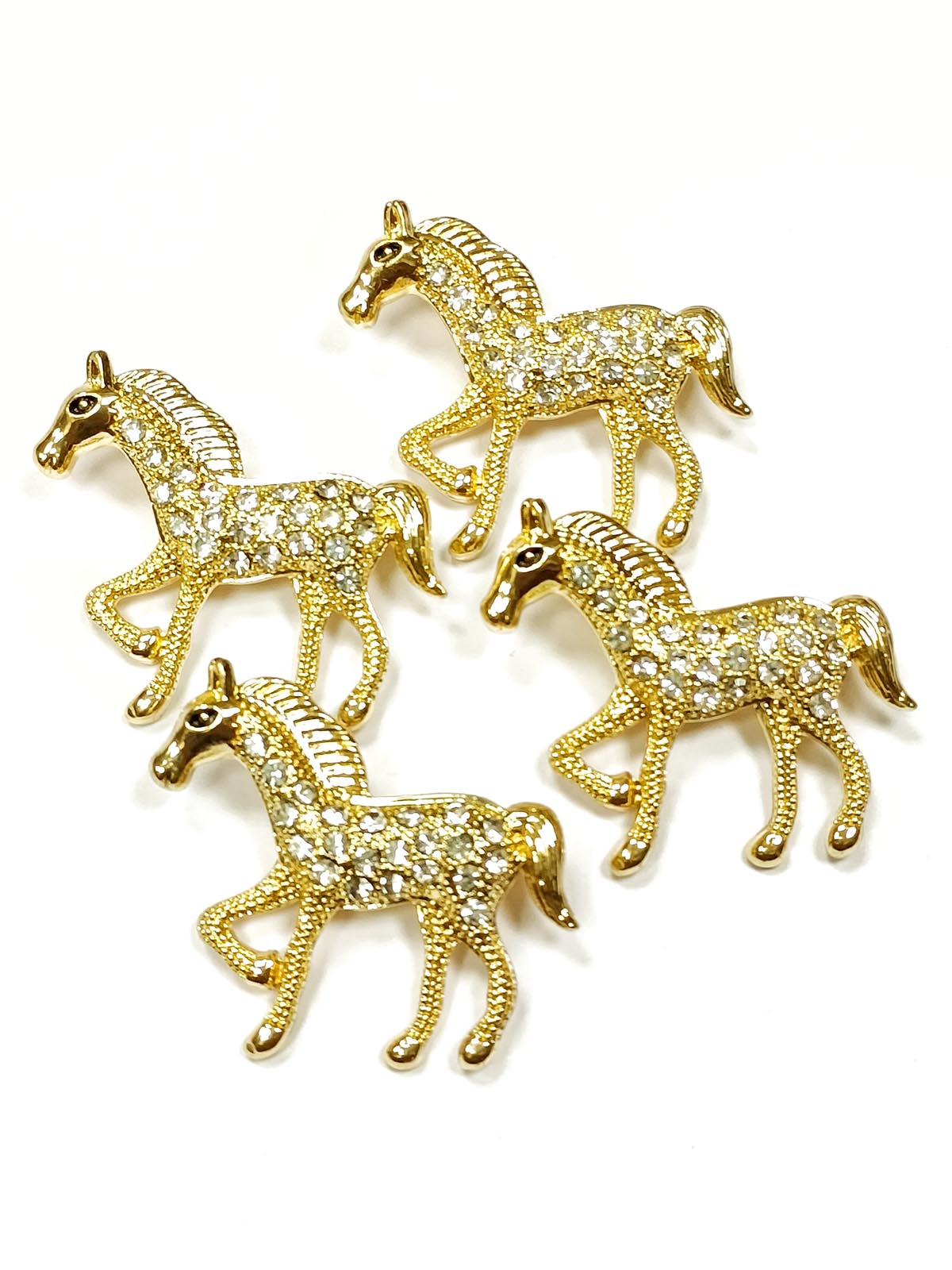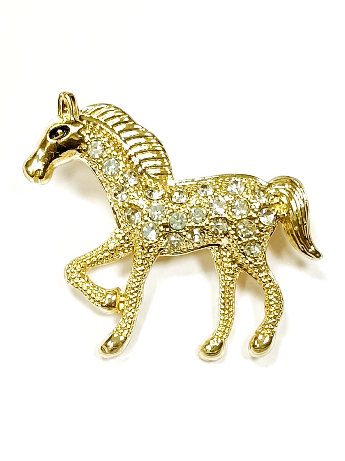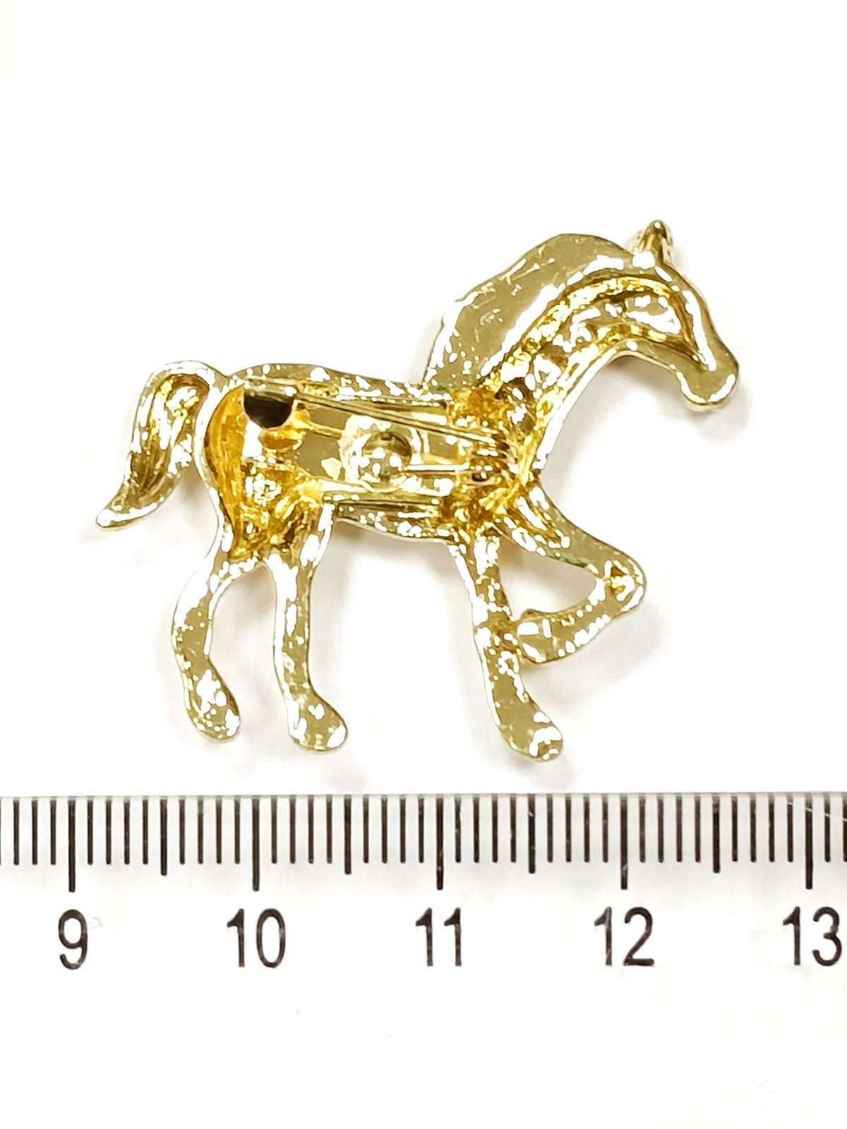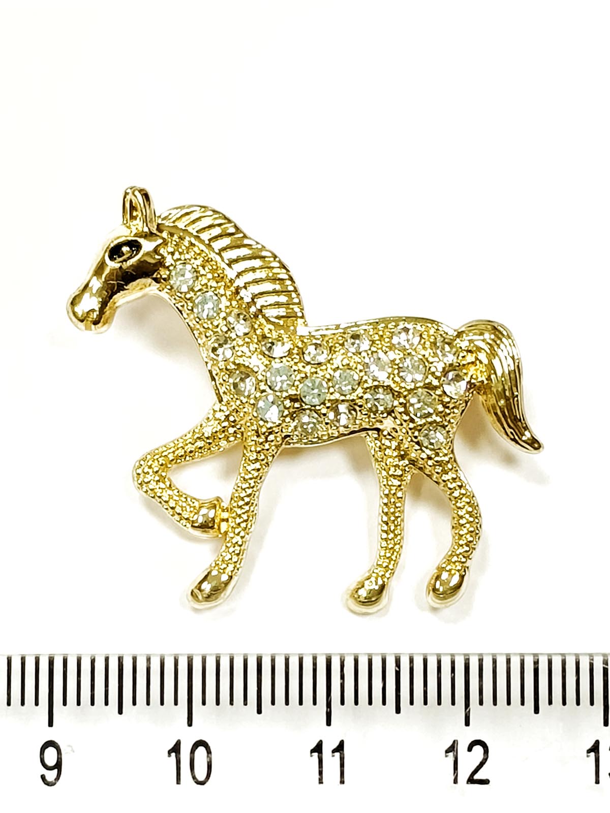 Брошь металлическая Лошадка с прозрачными стразами TOV-0558 основа золотого цвета 35х33х3 мм