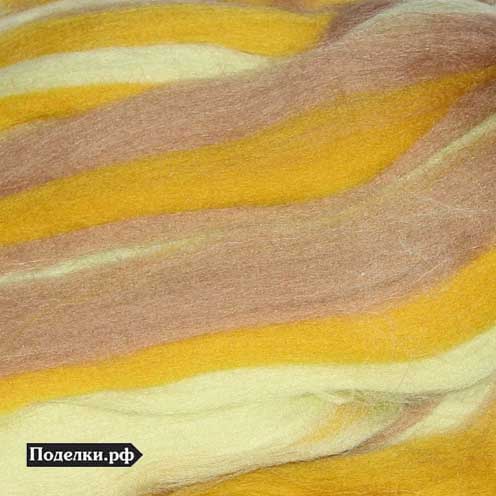 Троицкая шерсть для валяния мультиколор TR-6040 горчичный микс 50 г.