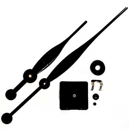 Комплект: усиленный механизм шток 16 мм, стрелки металлические (часовая 160 мм, минутная 275 мм от центра), гайка с шайбой и прокладкой, крепежная петля